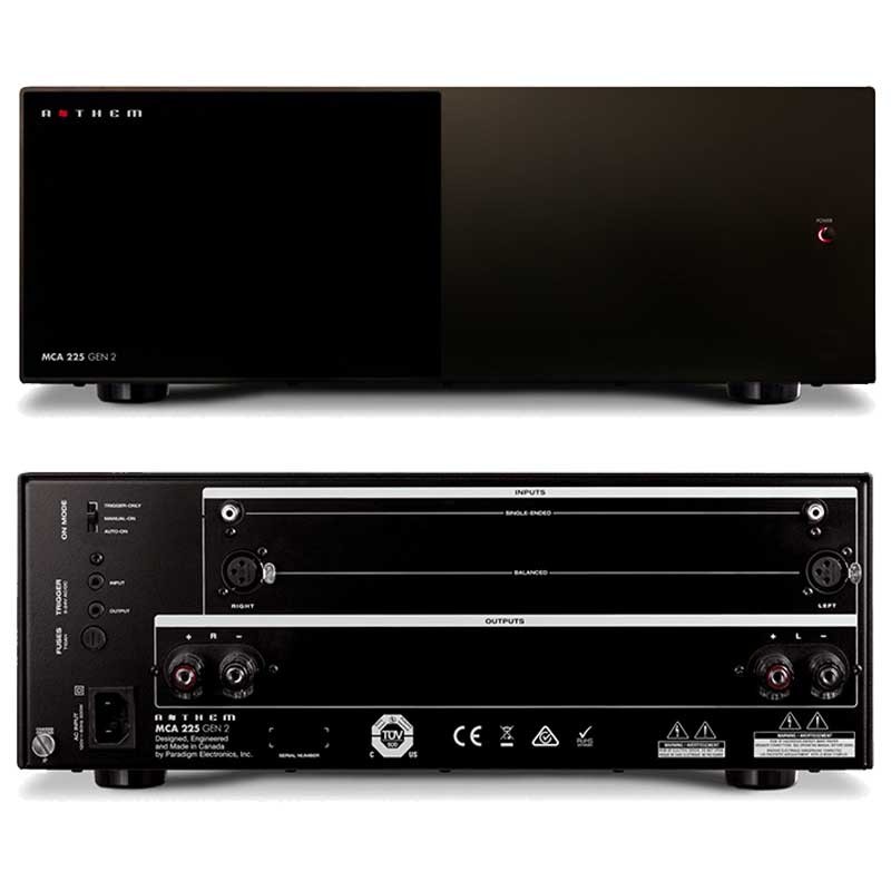L’Anthem MCA 225 Gen 2 est un amplificateur de puissance stéréo haute fidélité, conçu et fabriqué au Canada. Capable de délivrer 225 W par canal sous 8 Ω, 400 W sous 4 Ω et jusqu’à 600 W sous 2 Ω, il allie robustesse et raffinement. Grâce à son alimentation à toroïdes à faible flux, ses transistors bipolaires haute capacité et son Advanced Load Monitoring (ALM™), il assure une dynamique hors norme et une stabilité parfaite même sur des charges difficiles. Avec son design sobre assorti aux processeurs Anthem AVM 70 et 90, le MCA 225 Gen 2 s’adresse aux audiophiles recherchant puissance, fiabilité et musicalité.