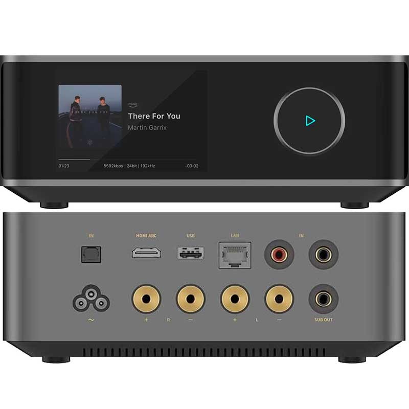 Le WiiM Ultra est le lecteur réseau le plus complet jamais conçu par WiiM. Véritable hub audio numérique, il combine un DAC audiophile ESS Sabre ES9038Q2M, une entrée phono pour platine vinyle, une connectique HDMI ARC et un écran tactile couleur de 3,5 pouces. Grâce à sa compatibilité étendue (Roon Ready, Spotify Connect, TIDAL Connect, Alexa Cast,...