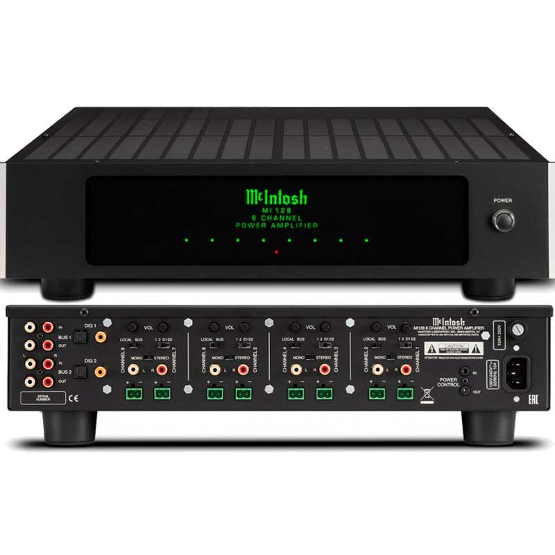 Le McIntosh MI128 est un amplificateur numérique multiroom haut de gamme à 8 canaux, conçu pour les installations audio distribuées, le home cinéma ou les systèmes commerciaux. Compact et puissant, il délivre 120 W sous 8 Ω ou 150 W sous 4 Ω par canal, grâce à une topologie Classe D à boucle fermée associée à des alimentations surdimensionnées. Silencieux et écoénergétique, il ne nécessite aucun ventilateur, garantissant une intégration discrète et une fiabilité exceptionnelle typique de McIntosh.