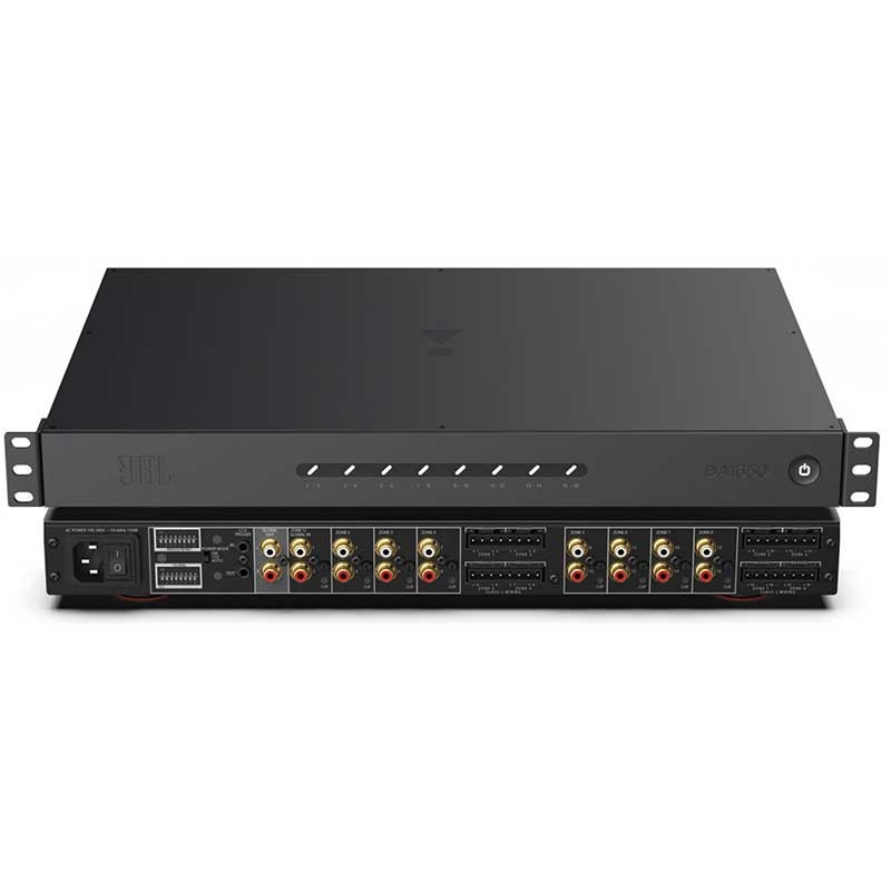 Le JBL DA1650 est un amplificateur multiroom 16 canaux / 8 zones conçu pour offrir une distribution audio puissante, flexible et silencieuse dans les installations résidentielles ou commerciales haut de gamme. Basé sur une architecture Classe D haute efficacité, il délivre jusqu’à 50 W par canal sous 8 Ω et peut être ponté en mode mono pour atteindre 185 W sous 8 Ω. Compact (1U) et empilable, il s’intègre facilement dans un rack et permet un contrôle total grâce à ses entrées locales, bus global, triggers 12 V et modes d’allumage automatique.