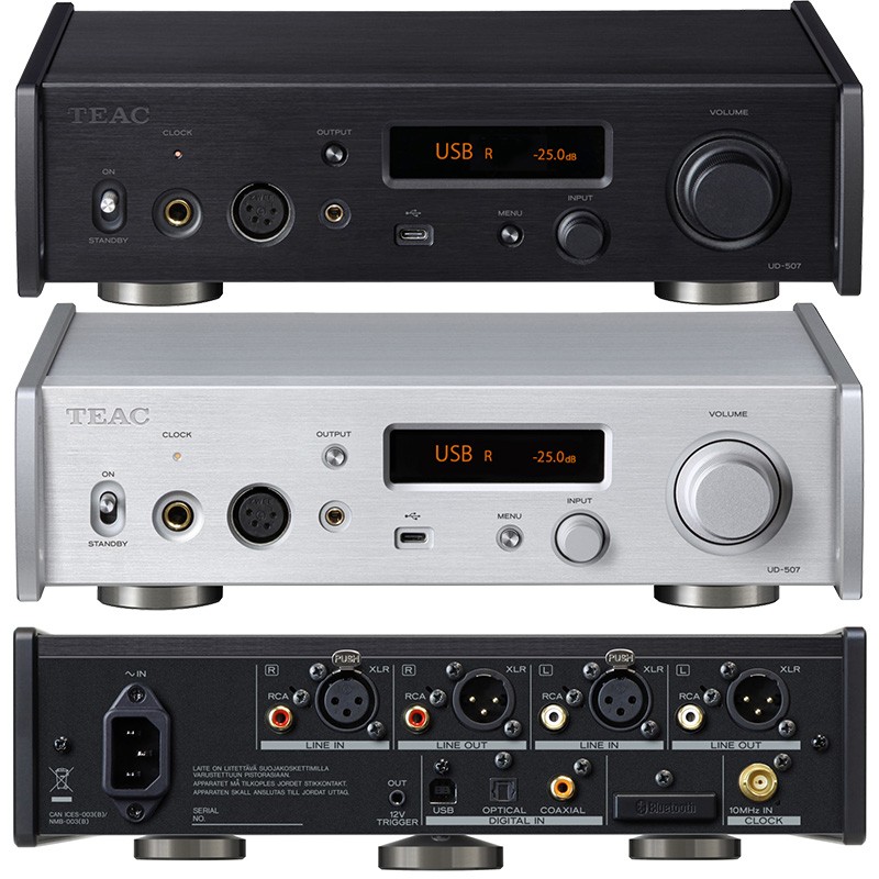 Le TEAC UD 507 est un DAC USB haut de gamme avec préampli ligne et amplificateur casque intégrés. Il réunit une conversion PCM/DSD de pointe, le Bluetooth HD (LDAC, LHDC, aptX HD…), une entrée d’horloge 10 MHz pour une synchronisation maître, ainsi qu’une section casque très aboutie avec trois sorties, gain ajustable et modes Balanced ou Active Ground. Utilisable en DAC pur, en préampli à niveau fixe/variable ou comme hub audio moderne, il s’intègre facilement dans tout système Hi-Fi ou desktop ambitieux grâce au trigger 12 V, à l’upconversion PCM et au décodage MQA.