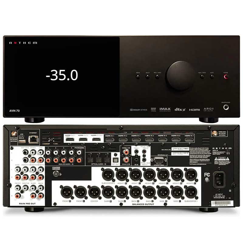 L’Anthem AVM 70 est un préamplificateur/processeur home cinéma haut de gamme, désormais compatible 8K, conçu pour piloter jusqu’à 15.2 canaux avec une précision de traitement avancée. Doté d’un DAC 32 bits / 768 kHz, d’une alimentation toroïdale et de la correction acoustique ARC Genesis, il offre une restitution immersive et calibrée. Sa plateforme HDMI 2.1 (7 entrées / 3 sorties eARC, HDCP 2.3) prend en charge Dolby Atmos, DTS:X, DTS Virtual:X et IMAX Enhanced, avec support 8K/60 Hz et 4K/120 Hz. Le streaming est complet grâce à AirPlay 2, Google Chromecast, Spotify Connect et Bluetooth v4.2. Compatible domotique (Control4, Crestron, Savant), l’AVM 70 est le cœur idéal d’un système cinéma de référence.